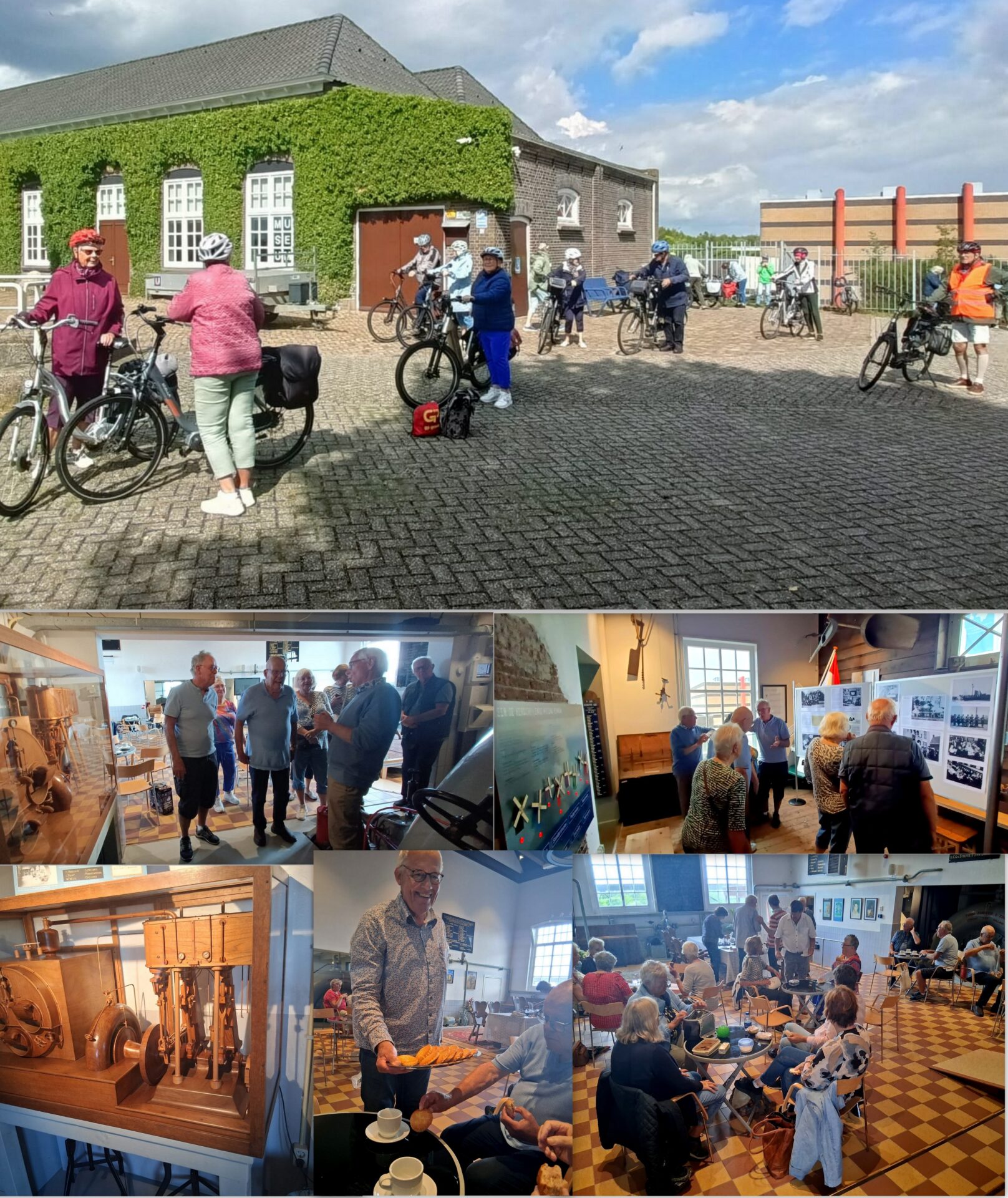 Dinsdagmorgen 2 september verzamelden zich een 18 tal mensen in Kloosterhof. Daar was het gelukkig droog en Gerda Bergen tapte een lekker bakkie koffie. Onder de deelnemers gonsde het: “Het zal toch wel doorgaan?” Buiten regende het nogal flink. Van Gerda mochten we het einde van de bui afwachten. “Om half 11 stopt het met regenen, dan gaan we.” Ondanks deze mededeling trok ieder die het mee had z’n regenkleding aan. Beter mee dan om verlegen. Daar gingen we, eerst over de Voorburggracht naar de Luize-knip, vandaar over de Hopmansweg naar de Diepsmeerweg. En over het viaduct om er even later onderdoor te gaan, naar het Geestmerambacht. Inmiddels nam de regen gestaag toe, even later haakten 2 deelnemers af. Zij dropen werkelijk af. Via het Dijk en Waardpad fietsten we naar het Molentochtpad om richting de Mare te rijden. Het weer knapte op en verschillende regenpakken konden uitgetrokken worden. Ook was het een goed “drop-moment”. Met een voorzichtig zonnetje stapten we weer op. Via allerlei paadjes en weggetjes voerden Piet en Bain ons door Alkmaar-Noord. O.a. over de Rekerdijk, door de Lekerwaard en over de Nollen. Zo kwamen we veilig in Heerhugowaard alwaar we een bezoek brachten aan het Poldermuseum. Vrijwilligers stonden klaar met koffie en koek. Daarnaast gebruikten we onze meegebracht lunch. In 2 groepen verdeeld doorkruisten we het Poldermuseum alwaar we de geschiedenis van Heerhugowaard leerden kennen, waar de naam vandaan kwam, hoe de polder leeggepompt werd en hoe men met wind, stoom, diesel en elektriciteit het water de baas bleef. Via film en exposities, kaarten en foto’s kwamen we veel aan de weet. Na een 2 e bakkie koffie stapten we weer op de fiets om via het strand van Luna, de Bolbrug, de Rieuwertsweide en de Westdijk weer terug te keren naar ons mooie Langedijk. In Broek op Langedijk namens we afscheid van elkaar, de laatste fietstocht van 2025 zat erop.