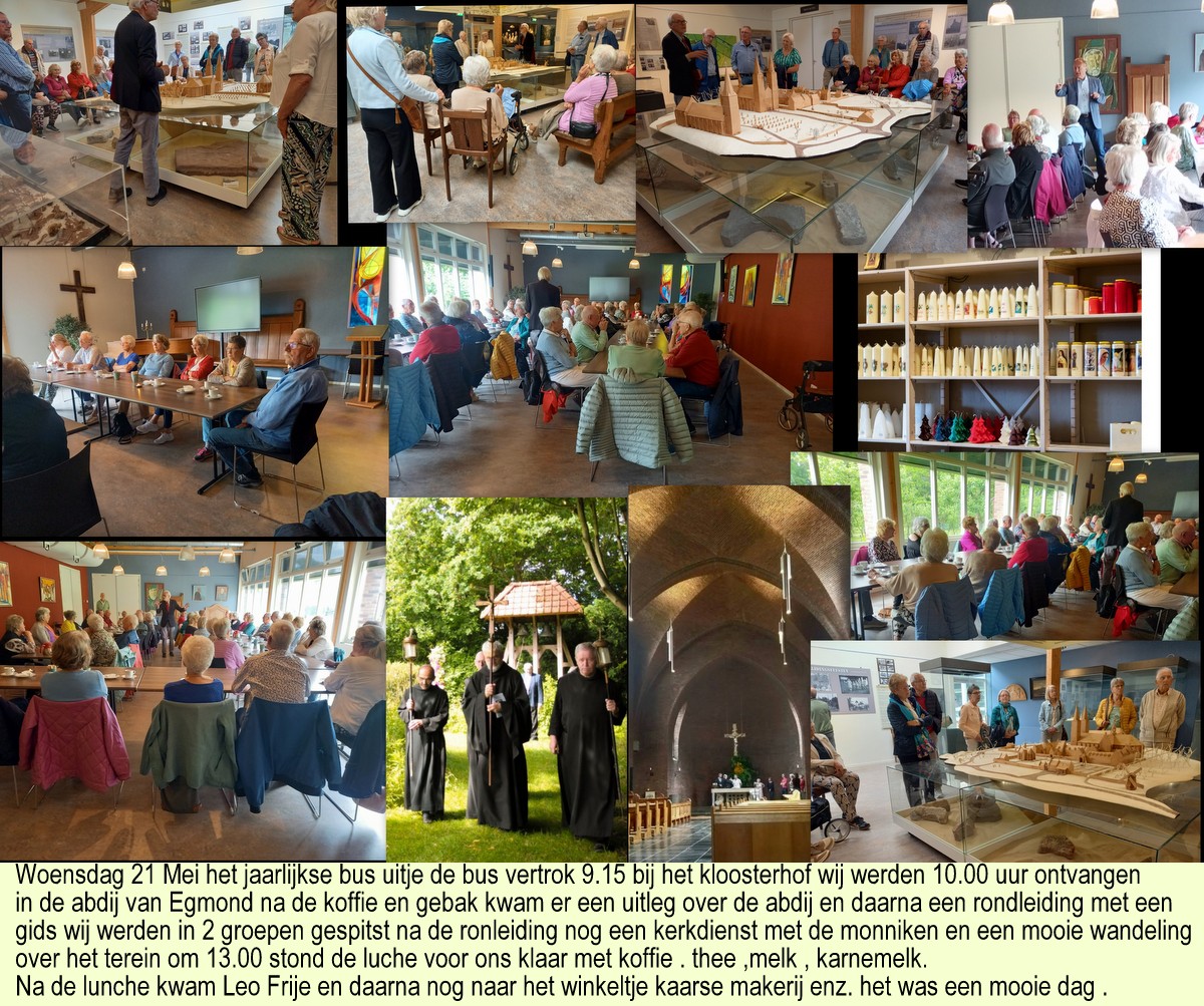 Om 10.00u vertrok er een groep van 25 fietsers om met elkaar een leuke dag te beleven. Velen dachten: “Waar zullen we heen gaan?” Piet Zut reed voorop en wist de weg. Via Zuid-Scharwoude naar De Noord. Het was nog gevaarlijk om met 25 fietsers over te steken bij de Donkereweg. We reden over de Veenhuizerweg, Molenweg, Berkmeerdijk naar het Obdammerdijkje, een mooi rustig weggetje. “Wat gaan we in Obdam doen?” Aan het einde ervan werd gestopt en was er snoep en drop. Dan over de Lutkedijk naar Wogmeer en Spierdijk, om even later in De Goorn aan te komen. Daar stopten we voor de deur bij Konijn houtbewerking.