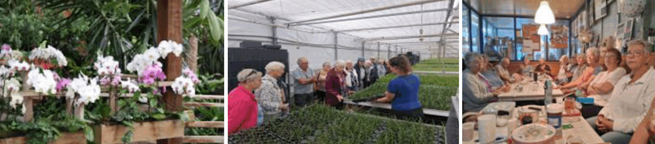 De fietstocht van juli zou gehouden worden op 1 juli, maar ivm de hitte-waarschuwing toen is besloten om de tocht te verplaatsen naar 8 juli. Wat een temperatuur verschil: de 1e juli rond de 37/38 gr en 8e juli ca 18 gr. Een verschil van ca 20 gr, maar dat weten we in ons kikkerlandje. Het kan altijd alle kanten op. Gelukkig was het droog , al stond er wel veel (tegen)wind.Na de koffie bij Kloosterhof gingen we o.l.v. Ton Beers op pad. De groep was niet groot ca 15 mensen. Ton had een leuke dorpentocht uitgezet. We gingen door/langs de volgende dorpen: Start Dijk en Waard, langs Oude Niedorp, ’t Veld, Moerbeek ook wel Morrebok genoemd, langs Valkoog, St. Maarten, Tuitjehorn, Dirkshorn en weer terug in onze Gemeente. In St. Maarten had Ton afgesproken bij de Fa. Tesselaar, een grote orchideën kwekerij. Daar werden we ontvangen met koffie en tijdens de lunch, vertelde de bazin, Mevr Tesselaar kort over het bedrijf. Gestart door haar opa , later haar vader ,nu waren zij en haar broer de bedrijfsvoerders. Na de lunch werd een rondgang door het bedrijf gemaakt, met de nodige toelichting. Bijzonder was dat een hele kleine stek van een orchidee opgestuurd werd naar Azië en aldaar in een fles werd gestopt en na vermeerdering van stekken kwam de fles weer terug naar het bedrijf en werden dan geplant om uit te groeien tot een volwaardige orchidee, goed voor de verkoop. De beste verkooptijd voor de orchideeën was voorjaar en najaar. Ook hier doet het gezegde: Vrouwen bloot, bloemen in de sloot/goot weer opgeld.